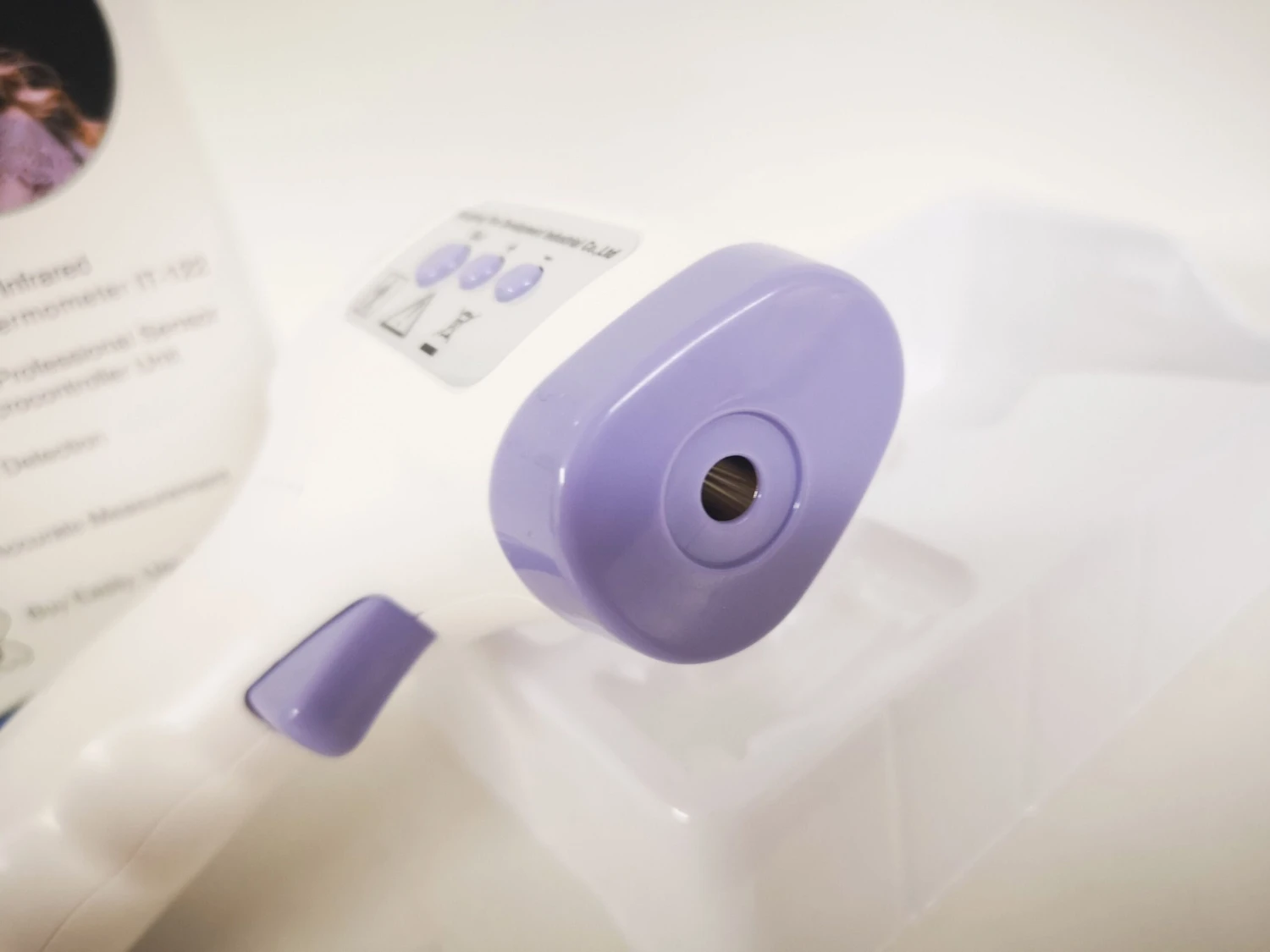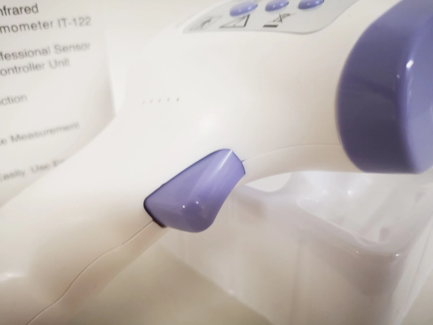 The non-contact design will be more sanitary, potentially decreasing the spread of bacteria/infection. Keep the sensor less than 2 inches from the skin and you will get a good reading.